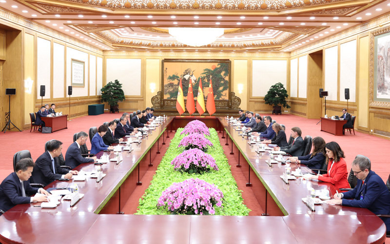 李强表示,当前,国际形势的“变”和“乱”更加突出,单边主义、保护主义上升,但同时求合作、促发展的力量也在不断壮大。中国和西班牙作为世界主要经济体,共同维护多边主义和自由贸易,坚定推动开放合作,为两国乃至全球发展增添了动能。越是形势变乱交织,中西两国越要加强务实合作,相互赋能、相互成就。今天上午,习近平主席同首相先生举行会晤,就深化两国关系擘画了蓝图。中方愿同西班牙进一步对接发展战略,推动双方全方位合作不断走深走实,实现更高水平的互利共赢。