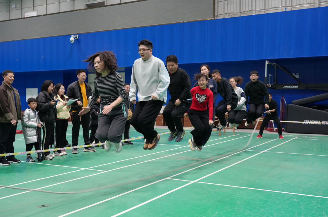 今天,审计人一改平日案头伏笔的沉稳,全身心投入,在比赛中切磋技艺,在协作中增进友谊,充分享受运动带来的快乐。在团体比赛区,有的队员在“旱地冰壶”区屏息凝神、精准投掷;有的在“愤怒的小鸟”区拉满弹弓、瞄准目标;有的在“蒙眼明锣”区原地转圈、跌撞前行,引得场边笑声不断。在拔河比赛区,呐喊声、助威声此起彼伏,各参赛队伍心往一处想、劲往一处使,充分展现了团结拼搏的集体精神;集体跳绳区,参赛队员们同步跃起、绳影翻飞;旱地冰壶贴地滑行,稳稳落定圆心;气排球网前托传扣杀,绷紧的神经此刻尽情舒展;三人篮球半场攻防,挡拆协防、急停跳投。在个人比赛区,毽子羽毽翻飞、乒乓球银球穿梭、羽毛球高远对拉、俯卧撑双臂绷直、单人跳绳绳如银弧……部分干部职工带着自己的孩子一起参加活动,他们奔跑、追逐、嬉闹,清脆的笑声一阵阵荡开,现场始终洋溢着热烈、喜庆、和谐的气氛。